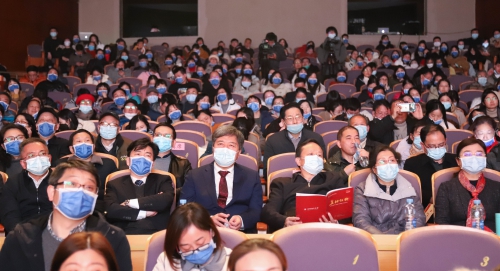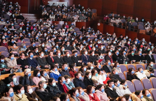省政协常委、提案委员会主任丁晓群,江西师范大学党委书记黄恩华,省卫健委党组成员、省人民医院党委书记钭方芳,省人民医院院长陈志平,江西师范大学副校长周利生,省卫健委相关处室负责人,省人民医院全体在家院领导出席,院干部职工代表近500人观看演出。