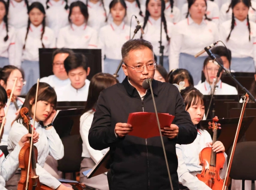 周利生代表江西师范大学对音乐会的举行表示祝贺,对省人民医院长期以来的关心支持表示感谢,对各位领导、医务工作者的到来表示欢迎。周利生简要介绍了江西师范大学以及承担这次演出任务的中至青蓝交响乐团和映山红合唱团。他指出,省人民医院是江西乃至中部地区有着重要影响的百年老院,近年来,省人民医院凝心聚力、开拓进取,医院高质量发展取得了新进展、新突破,涌现出一批重点学科和名医名家,为维护我省人民群众身体健康做出了重要贡献。长期以来,省人民医院和江西师范大学保持良好合作,结下了深厚的友谊,取得了丰硕的成果。相信举办此次《长征组歌》新年交响音乐会,将进一步推动双方文化建设事业的持续发展。