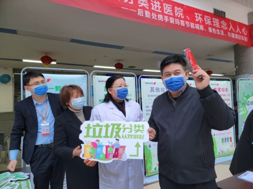 为了进一步加强垃圾分类回收意识,让垃圾分类理念深入人心,2022年2月14日上午,江西省人民医院(南昌医学院第一附属医院)在爱国路院区门诊大厅开展了以“垃圾分类进医院、环保理念入人心”为主题的垃圾分类宣传活动,院党委副书记黄清参加活动,并带头示范将“垃圾”正确投放到位。