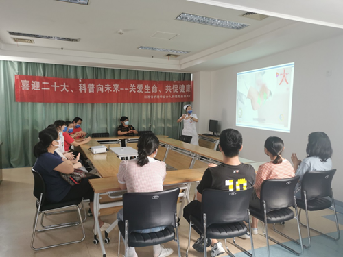 2022年9月16日,为弘扬科学精神、普及科学知识、积极倡导新时期医护工作者做好健康教育,传播科学教育方法,江西省护理学会介入护理专业委员会在周云英主委的带领下,在江西省人民医院(南昌医学院第一附属医院)开展“喜迎二十大 科普向未来——关爱生命、共促健康”2022年全国科普日活动。