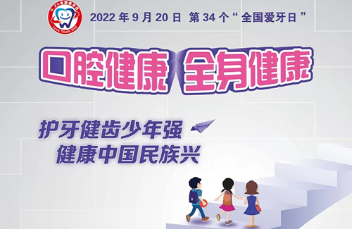 2022年9月20日是第34个“全国爱牙日”,今年的活动主题是“口腔健康 全身健康”,副主题是“保牙健齿少年强,健康中国民族兴”。