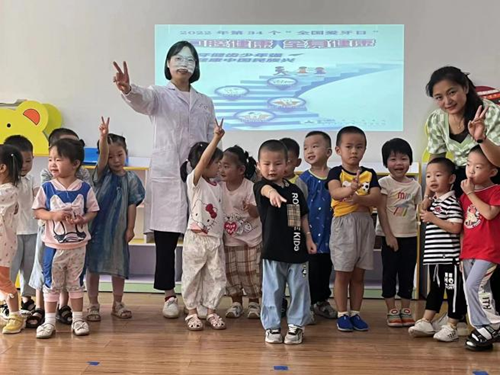 活动中,彭二梅从图片、视频动画、模型教学等方面为小朋友们上了一节别开生面、生动有趣的口腔科普课。同时向小朋友们形象地展示了正确的刷牙方法,鼓励小朋友们坚持早晚刷牙。