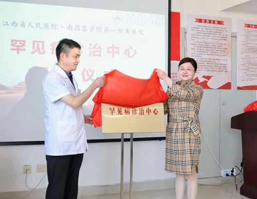 2022年9月21日,为积极响应国家罕见病防治政策,改善我省罕见病患者的就诊现状,充分利用医院的优质资源,江西省人民医院(南昌医学院第一附属医院)罕见病诊治中心揭牌仪式在爱国路院区北楼14楼风湿免疫科举行。省卫健委党组成员、院党委书记钭方芳,副院长梁斌,党委委员、风湿免疫科主任段利华出席,罕见病中心专家组成员代表、相关职能部门负责人等参加。