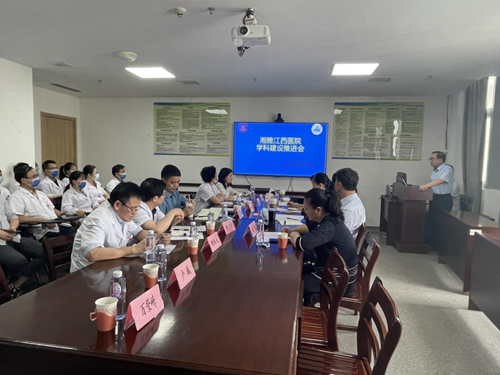 在之后召开的中南大学湘雅医院江西医院学科建设推进会例会上,江西省人民医院神经内科主任、中南大学湘雅医院江西医院副院长徐仁伵就现阶段神经内科学科亚专业规划、学科建设的优势和发展短板做了阐述。相关与会人员与湘雅医院神经病学专家们就湘雅医院江西医院学科建设的下一步工作做了更进一步的广泛交流,在亚专业划分、发挥优势、补齐短板方面达成一定的共识。梁斌对学科建设推进会做了总结,在教学、临床、科研等方面,大家要统一思想,所有人都要积极思进,发扬井冈山精神。他表示医院会尽全力支持和推进中南大学湘雅医院江西医院建设,大家应以讲团结、讲合作、讲责任、讲大局为重,让国家神经疾病区域医疗中心建设焕发出更加绚丽的光彩。