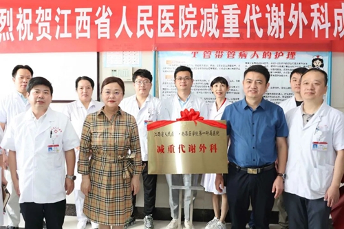 2022年9月28日上午9时许,江西省人民医院(南昌医学院第一附属医院)减重代谢外科成立仪式在爱国路院区南楼13楼举行,省卫健委党组成员、院党委书记钭方芳,副院长梁斌为减重代谢外科揭牌。党办、宣传外事处、质控处、肝胆外科负责人等医务人员参加。