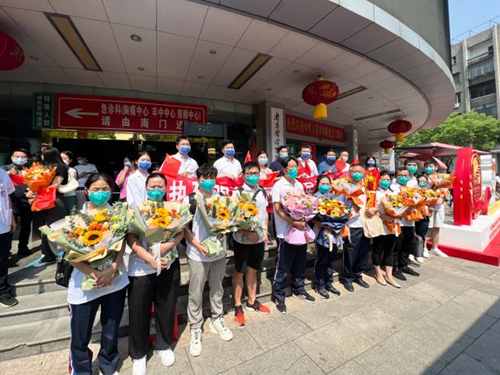 为了迎接抗疫英雄们胜利归来,在全院各处(科)室的积极参与下,医院在两院区均准备了温馨而隆重的欢迎仪式,省卫健委党组成员、院党委书记钭方芳,院长陈志平,全体在家院领导出席仪式。