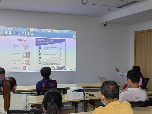 2022年10月25日下午,江西省人民医院(南昌医学院第一附属医院)▪中南大学湘雅医院江西医院(国家神经疾病区域医疗中心)神经内科红手环志愿者积极学习贯彻落实党的二十大精神,以“识别中风症状,把握宝贵时间”为主题,在示教室开展“肌无力的科普宣教”。活动主要针对有肌无力的住院患者及家属,科普急性脑梗死等疾病的防治知识和健康宣教,免费发放脑卒中等科普宣传手册40份。