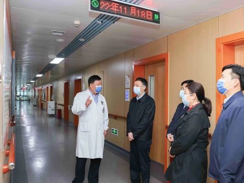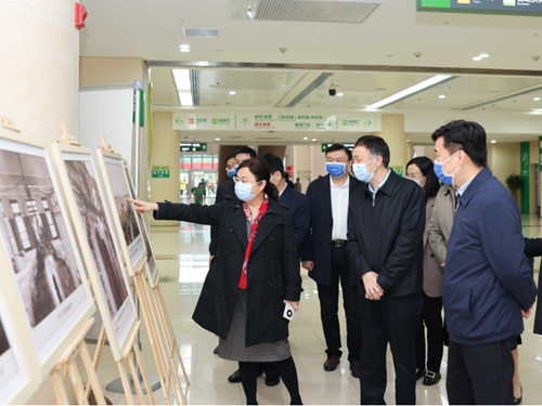 唐舒龙一行实地参观了红谷滩院区门诊长廊历史图片展,走访器官移植科和介入诊疗中心,详细了解医院建院125年历史文化以及器官移植科、省心血管病医院学科建设情况,随后开展座谈。