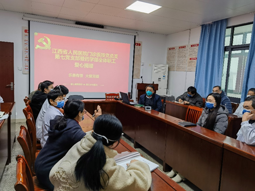 乐善好施、扶贫帮困是中华民族的传统美德,相互帮助、患难扶持是社会倡导的时代新风。2022年12月16日,江西省人民医院(南昌医学院第一附属医院)药学部、门诊医技总支第七支部在总药师、支部书记胡建新的倡导下开展“爱心助学”自愿捐赠活动,为我院乡村振兴定点帮扶村-九江市柴桑区江洲镇官场村的2名家庭困难学子募捐,帮助他们渡过难关。支部全体党员和全体药学部职工纷纷参与其中,积极奉献爱心,共募得7570元爱心捐款。