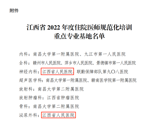 | 喜讯!神经内科、泌尿外科获评江西省2022年度住院医师规范化培训重点专业基地 |