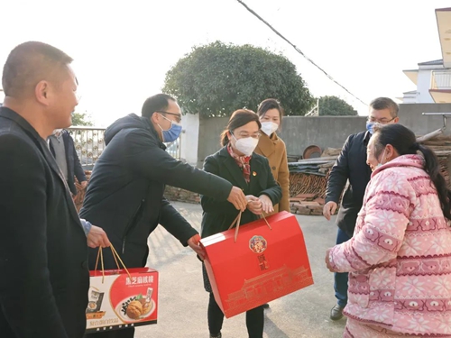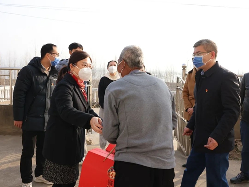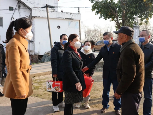 随后钭方芳带队走访慰问了五保户张忠茂、三类人员叶勤海、脱贫户刘明珍等困难群众。在农户家中,钭方芳详细了解他们的家庭收入、身体状况、医疗保险以及生产生活中存在的困难,特别关心他们新冠病毒感染情况以及退烧、感冒类药品储备情况,叮嘱他们一定要做好个人防护,随后将慰问品送到他们手中,并送去新春的祝福。