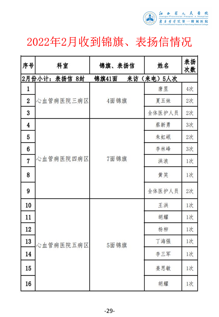 2022年2月医务人员医德医风公示表扬