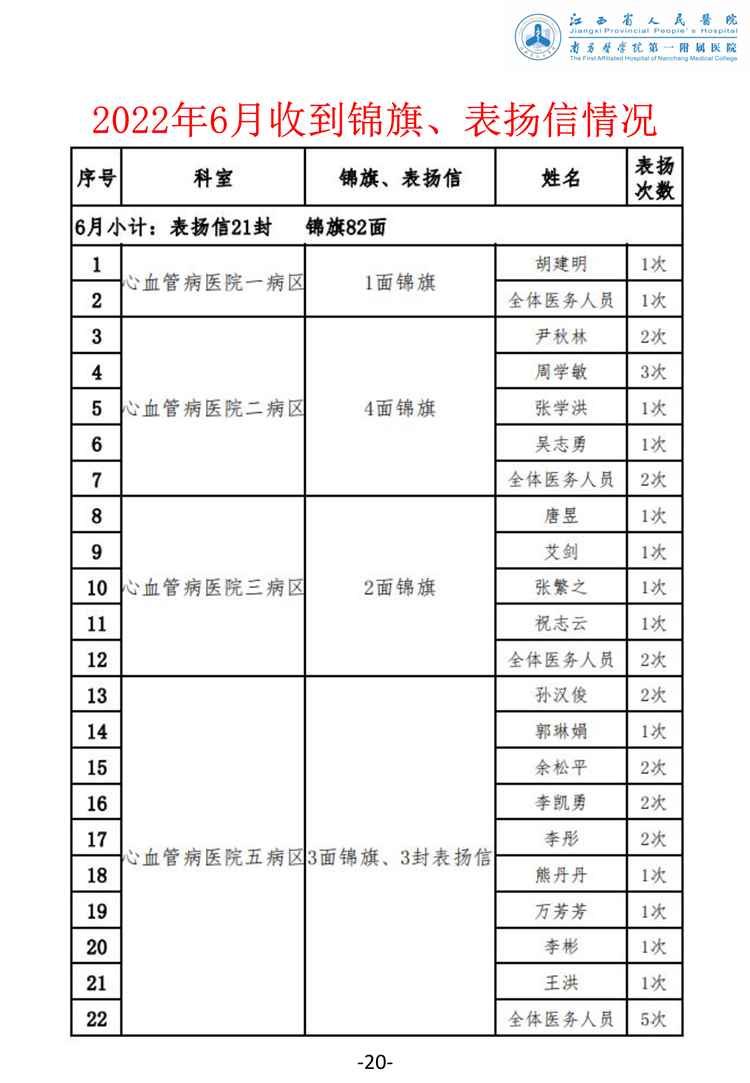 2022年6月医务人员医德医风公示表扬