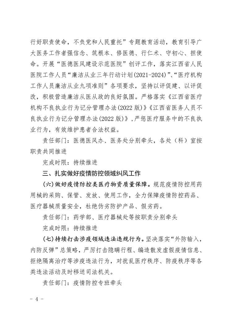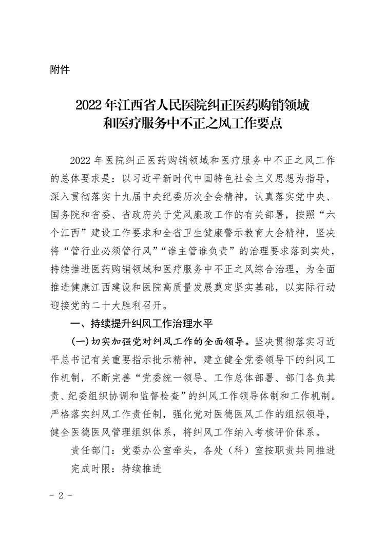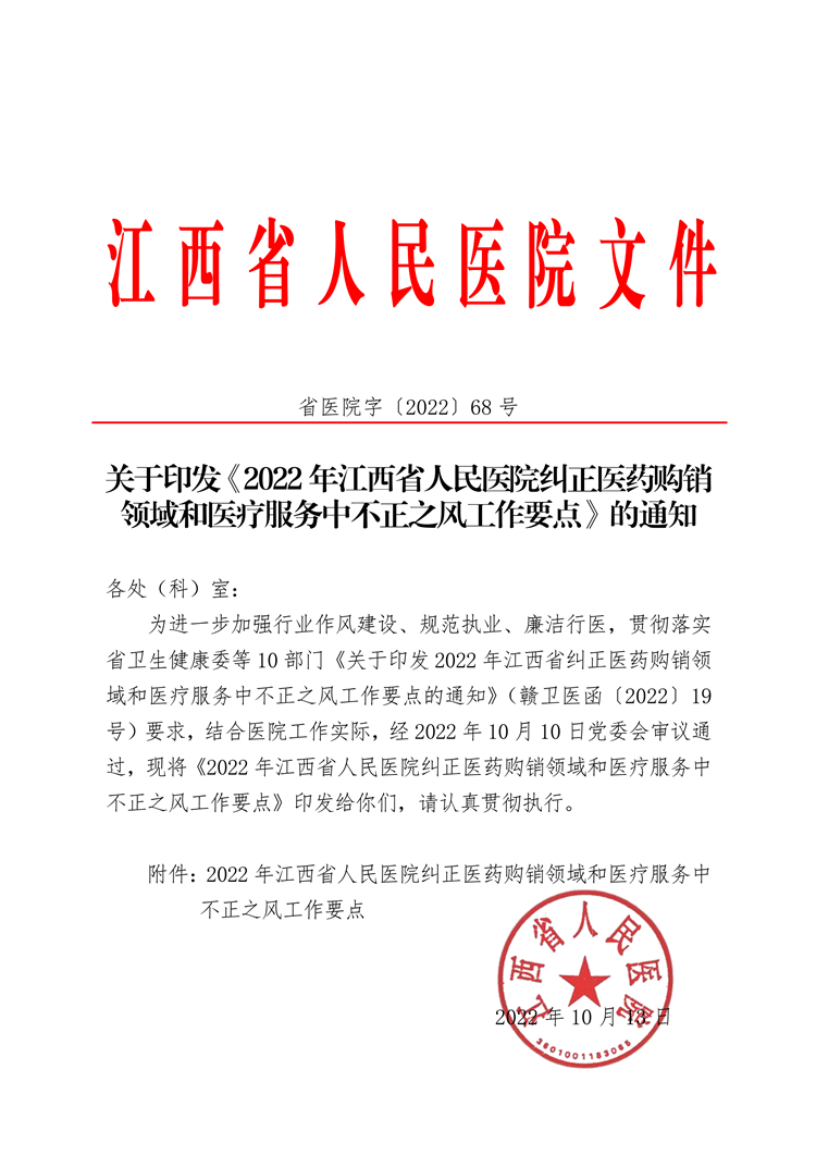 关于印发《2022年江西省人民医院纠正医药购销领域和医疗服务中不正之风工作要点》的通知