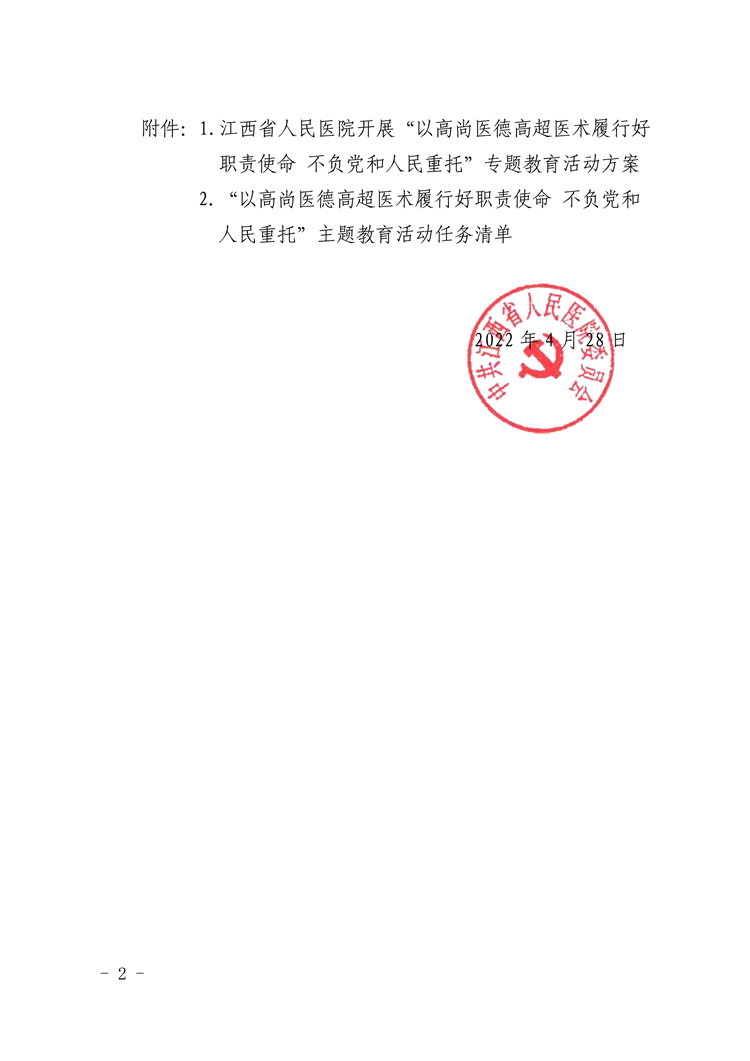 关于印发《江西省人民医院开展“以高尚医德高超医术履行好职责使命 不负党和人民重托”专题教育活动方案》的通知