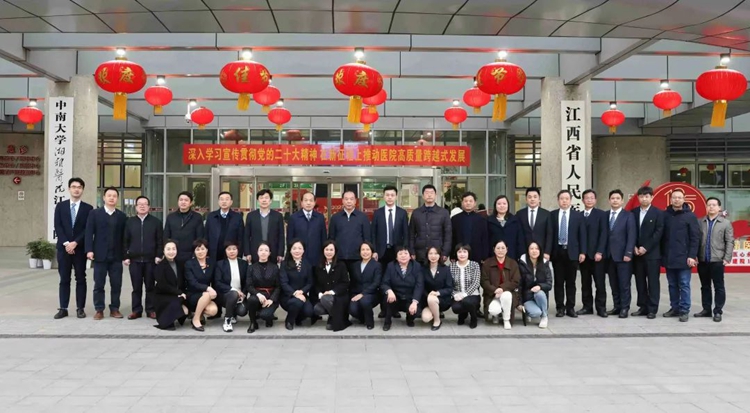 2023年2月2日,中南大学湘雅医院党委书记张欣,副院长刘龙飞、张乐一行17人莅临江西省人民医院(南昌医学院第一附属医院)、湘雅江西医院实地考察,就进一步深化合作、加快推进共建中南大学湘雅江西医院(国家神经疾病区域医疗中心建设项目)等工作开展座谈。省卫生健康委党组成员、南昌医学院党委书记龚建平,省人民医院院长陈志平出席会议,省卫生健康委医政医管处处长李中坚,省人民医院领导邹清水、徐仁伵,湘雅江西医院执行副院长冯莉等参加,省人民医院副院长、湘雅江西医院提名党委书记梁斌主持。