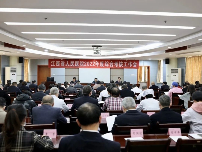 2023年2月22日下午,按照江西省卫健委关于开展2022年度综合考核工作的通知要求和工作部署,江西省人民医院(南昌医学院第一附属医院)召开2022年度综合考核工作会。省卫健委党组成员、副主任、考核组组长江晓斌率考核组一行6人出席会议。省卫健委党组成员、院党委书记钭方芳代表领导班子作年度工作总结,报告2022年履职情况。院长陈志平主持会议,全体在家院领导、副护士长以上中层干部及部分职工代表参加会议。