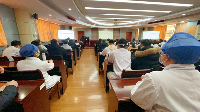 | 2023年2月14日,江西省人民医院(南昌医学院第一附属医院)组织召开2023年第一期院科两级质控培训会。副院长梁斌致辞,全体质控员60余人参会。