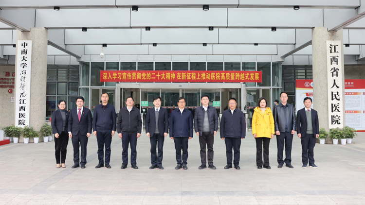 2023年2月16日,大理白族自治州人民政府州长陈真永携州政府副州长余巍等一行11人莅临江西省人民医院(南昌医学院第一附属医院)红谷滩院区考察调研并开展座谈。省人民医院院长陈志平,副院长梁斌、邹清水,总会计师欧阳环宇出席。邹清水主持座谈。