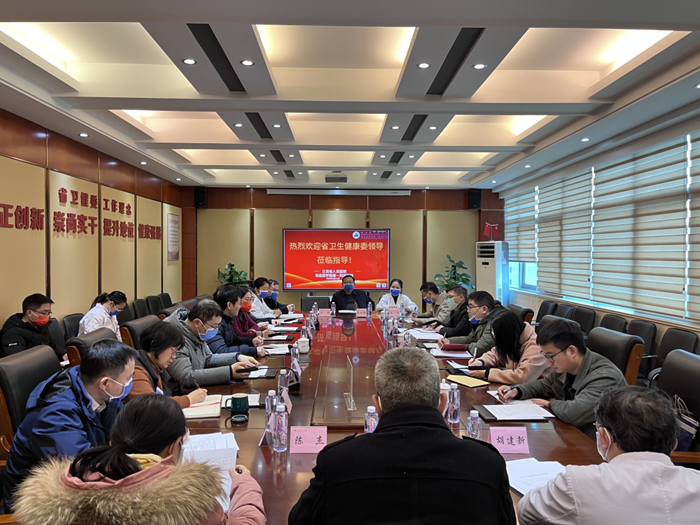 2023年2月14日,江西省卫生健康委平安建设考评组一行来到江西省人民医院(南昌医学院第一附属医院)爱国路院区开展2022年度委直单位平安建设工作考核,并召开座谈会进行工作指导。副院长邹清水,总会计师欧阳环宇及相关处室负责同志陪同。