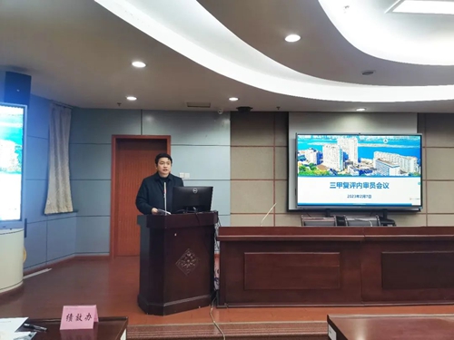 2023年2月7日晚7时许,江西省人民医院(南昌医学院第一附属医院)在爱国路院区裙楼四楼会议室召开三甲评审内审员培训大会,旨在充分发挥内审员队伍在三甲复审中的中流砥柱作用。院党委委员、副院长梁斌出席并讲话,运营部绩效办负责人主持会议并对内审员开展业务培训,全院内审员及相关职能部门负责人共计100余人参会。
