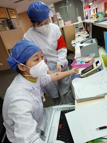 医生和护士顾不上吃饭休息,拖着疲惫的身体一个一个有条不紊地处理患者。结束工作,所有人都精疲力尽,一个医生笑着说,“我的鼻涕都流嘴巴里了,我要先换个口罩”。他们每一个人都只是血肉之躯,他们有的比患者咳嗽还厉害,有的边上班边挂着点滴,有的得新冠后一天都没有休息过,因为选择了这个职业,因为患者需要,他们没有抱怨,没有退缩,扛下了所有的累和苦,因为他们是这个团队的一员,召之即来,来之能战,战之必胜是这个团队的魂。