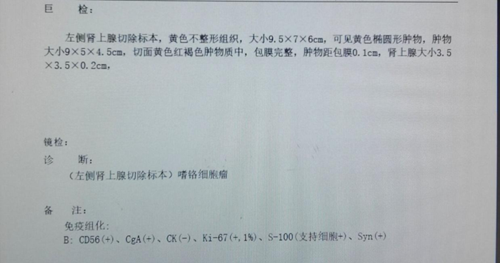 术后病理报告诊断为嗜铬细胞瘤