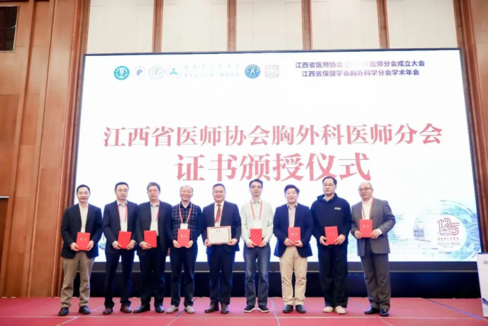 2022年11月4-5日,江西省医师协会胸外科医师分会在昌成立。此次大会得到江西省卫健委、江西省医师协会及省内各医疗机构的大力支持,来自全省二甲以上的医疗机构共133名代表参会,大会选举产生了分会第一届委员会。省人民医院院长陈志平,省卫健委医政医管处处长李中坚,省人民医院副院长古金海,江西省医师协会会长雷良华出席活动。江西省人民医院(南昌医学院第一附属医院)胸外科主任徐全当选江西省医师协会胸外科医师分会会长。
