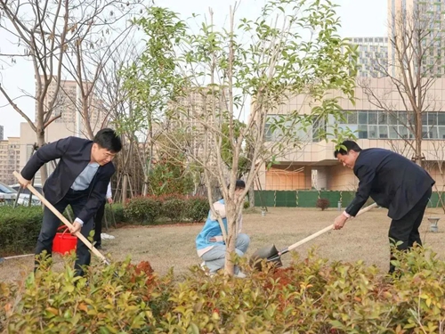春回大地万物苏,植树添绿正当时。在第45个植树节到来之际,2023年3月12日上午,江西省人民医院(南昌医学院第一附属医院)在红谷滩院区绿化带开展了“共同建设人与自然和谐共生的美丽家园”主题植树活动。省卫健委党组成员、院党委书记钭方芳,院长陈志平,全体在家院领导,行政职能处(科)室负责人等积极参与到此次活动中,用实际行动践行绿色发展理念,为红谷滩院区再添新绿。