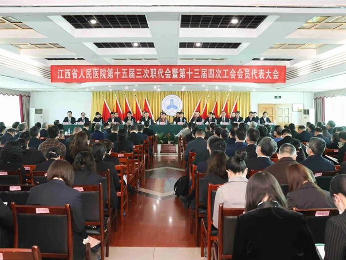 2023年3月10日上午,在雄壮的《国歌》声中,江西省人民医院(南昌医学院第一附属医院)第十五届三次职工代表大会暨第十三届四次工会会员代表大会在爱国路院区门诊十楼会议室拉开帷幕,大会的主题是“全面贯彻落实党的二十大精神,奋力开创医院高质量发展新局面”。医院党政领导班子成员、主席团成员在主席台就坐,职工代表、特邀代表、列席代表共278人参加会议。