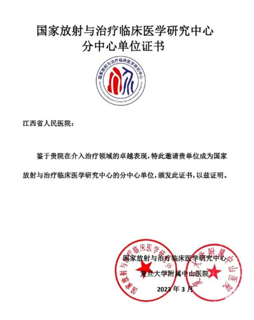 | 喜报!江西省人民医院获批国家放射与治疗临床研究中心分中心 |