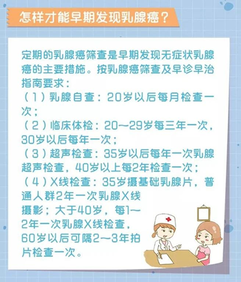 对于乳腺癌,目前最好的预防方法是定期筛查,乳腺癌的治疗关键在于早筛查、早诊断、早治疗,据统计,早期乳腺癌的5年生存率可以超过90%。