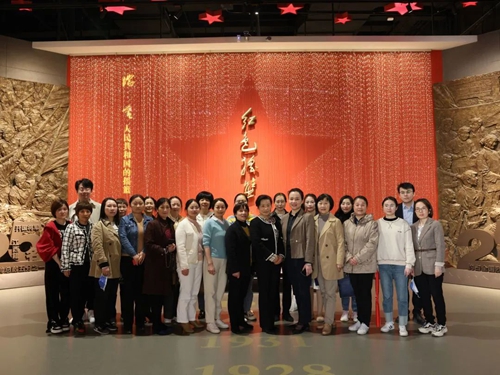 随后,一行人重点参观了“红色摇篮——江西革命史陈列展馆”,展馆以“曙光映照”“军旗升起”“星火燎原”“红色中华”“浴血坚持”“抗日烽火”“迎接解放”7个部分全景式地展现了江西从1919年五四运动到1949年中华人民共和国成立这30年的壮阔历史。透过革命馆的展览区,陈列着一件件红军的物品,破旧的军帽,残旧的军旗,生锈的军号,磨破的草鞋……每一件展品,都讲述着波澜壮阔的英雄史诗以及培育出的伟大的井冈山精神、苏区精神,让所有成员经受了一次思想的洗礼、心灵的触动。