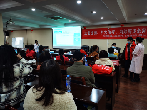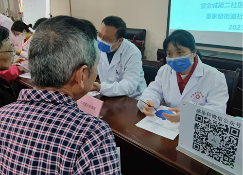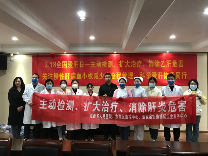 为加深社会大众对肝炎这一全球公共卫生问题的认识,强化肝炎及其相关疾病的预防、筛查和控制。进一步推动肝炎防治工作,提高群众爱肝护肝的健康理念,形成全社会共抗肝炎肝病良好氛围。在2023年的3月18日全国第23个爱肝日来临之际,江西省人民医院(南昌医学院第一附属医院)感染性疾病科携手东湖区疾控中心在董家窑街道社区卫生服务中心开展以“主动检测、扩大治疗、消除乙肝危害”为主题的义诊宣讲活动。