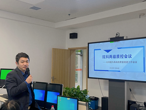 2022年11月4日上午,江西省人民医院(南昌医学院第一附属医院)质控科和影像科联合开展了以问题为导向的质量改进评价追踪会,两院区线上线下同步进行。副院长梁斌出席,影像科全体人员参加。