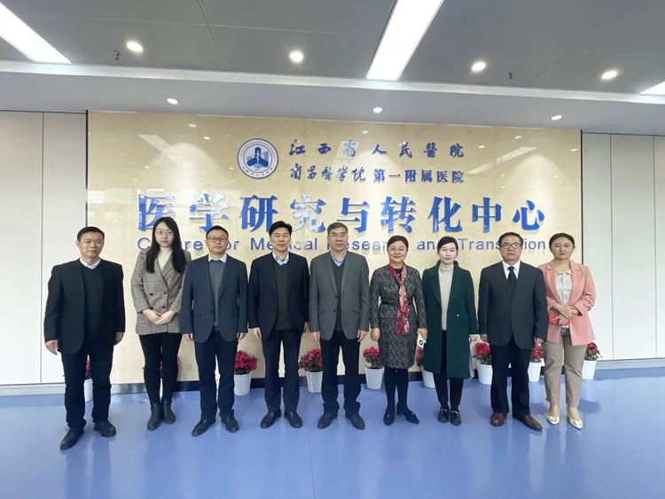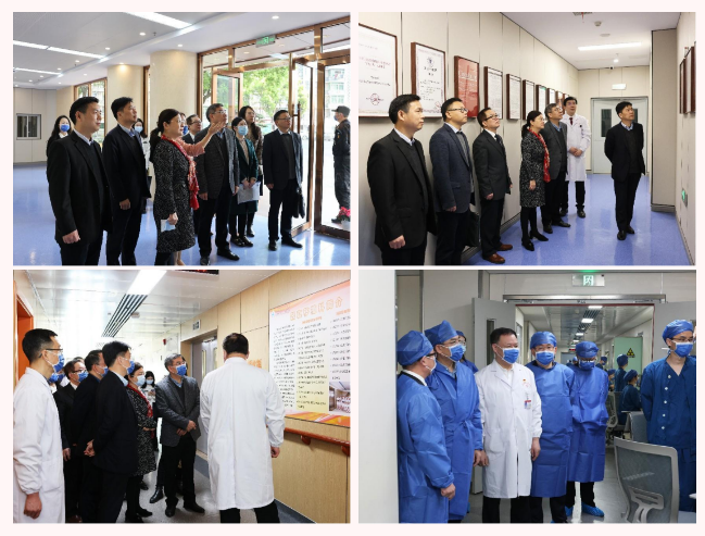 调研组首先来到江西省人民医院医学研究与转化中心进行实地考察,参观了江西省血液肿瘤细胞生物学重点实验室、江西省卫生健康数字骨科重点实验室、江西省心血管病研究所等科研平台,认真听取了平台负责人的介绍,对我院科技创新平台的现状有了基本了解。在我院红谷滩院区,鄢帮有一行实地参观了器官移植科、介入诊疗中心,听取了相关学科介绍,进行了深入交流。