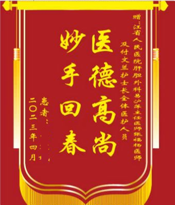 “很感谢肝胆外科医护人员对我妈妈的照顾,现在她康复出院了。” 2023年4月28日,患者占女士的家属拿着感谢信和锦旗来到江西省人民医院(南昌医学院第一附属医院)肝胆外科办公室,他很感谢易沪萍主任医师和全体医护人员的精湛医术及暖心护理,让自己母亲住院期间感受到家的温暖和无微不至的关怀。