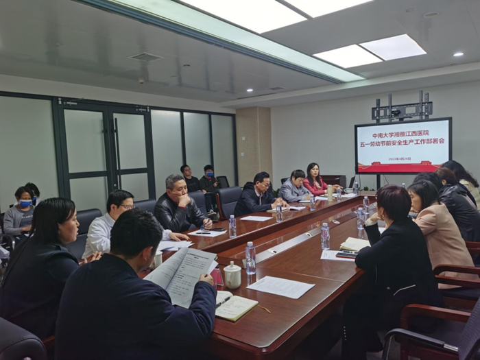 劳动节将至,为保证节日期间医院生产工作平稳运行,杜绝安全生产事故,2023年4月26日下午,中南大学湘雅医院江西医院召开安全生产工作部署会,中南大学湘雅医院江西医院提名党委书记、江西省人民医院(南昌医学院第一附属医院)副院长梁斌,中南大学湘雅医院江西医院副院长、神经内科执行主任冯莉出席,各相关科室负责人参加。会议由梁斌主持。