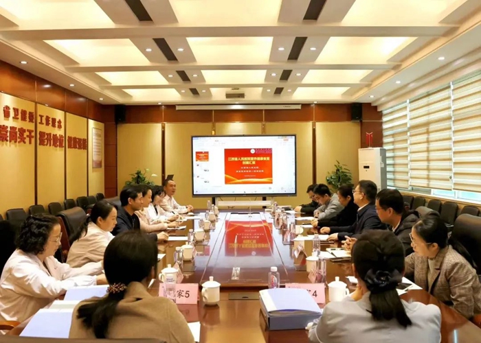 2023年4月24日,江西省卫健委药政食品处刘思海处长率专家一行8人来到江西省人民医院(南昌医学院第一附属医院)开展“营养健康示范食堂”现场评审。副院长邹清水出席,总务处、临床营养科相关负责同志参会。