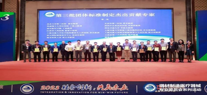 从中国医疗器械协会增材制造医疗器械专业委员会官方获悉,2023年4月21日在上海举行的《第三、四批增材制造医疗器械团体标准制定表彰大会》上,江西省卫生健康数字骨科重点实验室主任、江西省人民医院(南昌医学院第一附属医院)骨科名誉主任董谢平分别荣获2020-2021年第三批和2021-2022年第四批增材制造医疗器械团体标准制定“杰出贡献专家”称号。这是董谢平继2020年荣获3D打印医疗器械团体标准制定“突出贡献专家”称号后所获的又一表彰。