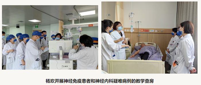 为进一步完善神经疾病医疗服务体系顶层设计,优化医疗资源布局,提升区域内神经系统疾病的医疗服务保障能力,助力国家神经疾病区域医疗中心建设,杨欢对湘雅江西医院神经内科五个病区的疑难病例进行神经内科亚专业联合教学查房和病例讨论,肯定了我院神经免疫方面做的大量临床、教学和科研工作;同时对神经免疫疾病的免疫治疗和神经免疫疾病患者管理提出更高的要求及规范指导。全科医生、规培医生、研究生、实习生均参与教学查房和病例讨论。