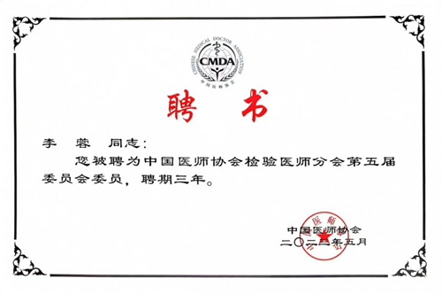 2023年5月25日,中国医师协会检验医师分会第五届委员会选举成立大会在杭州召开,江西省人民医院(南昌医学院第一附属医院)检验科、省临检中心主任,江西省医师协会检验医师分会第一届委员会会长李蓉教授当选中国医师协会检验医师分会第五届委员会委员。