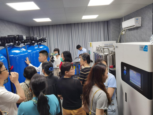 会后,殷慧敏、血液透析中心工程师熊光瑞带领参会人员参观了江西省人民医院血液净化中心环境、血液净化设备:集中供A液配制系统以及国产智能整机热消毒血液透析水处理设备等。整洁舒适的透析环境、规范合理的分区布局、先进的仪器设备、工作细节的展现等,大家纷纷表示受益匪浅。