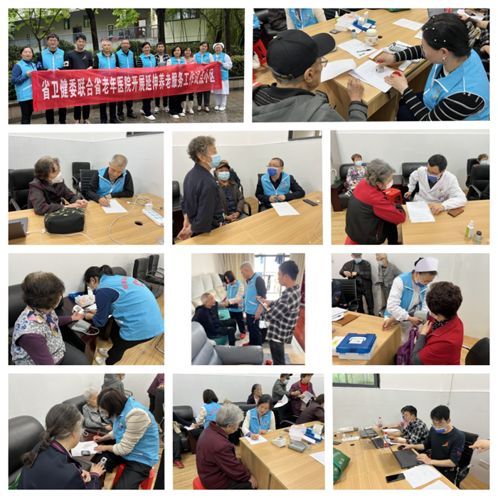 2023年4月14日上午,江西省人民医院(南昌医学院第一附属医院)——省老年医院医护人员一行来到东湖区龙泉湾小区,为小区老年人进行健康体检、疾病咨询、慢病管理等服务。