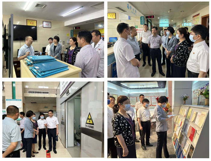 调研组一行深入进贤医院大外科党支部、大内科党支部、医技党支部、机关党支部,重点了解各支部党建工作情况和医院骨科、呼吸与危重症医学科、介入室的运行情况,与就诊患者亲切交谈,并参观医院廉政展示厅。