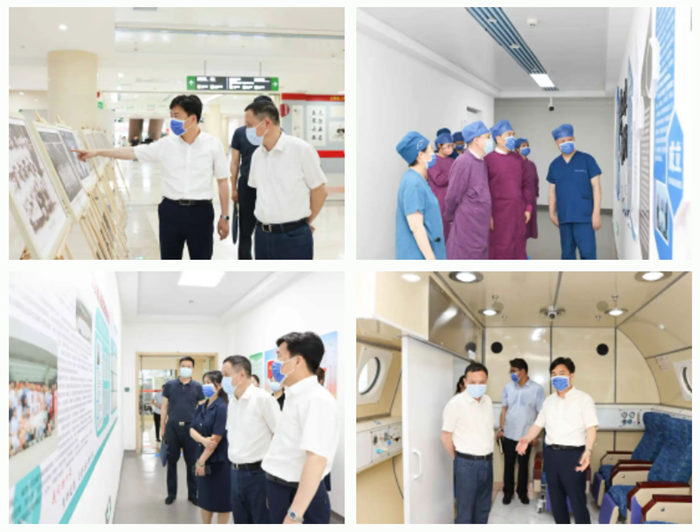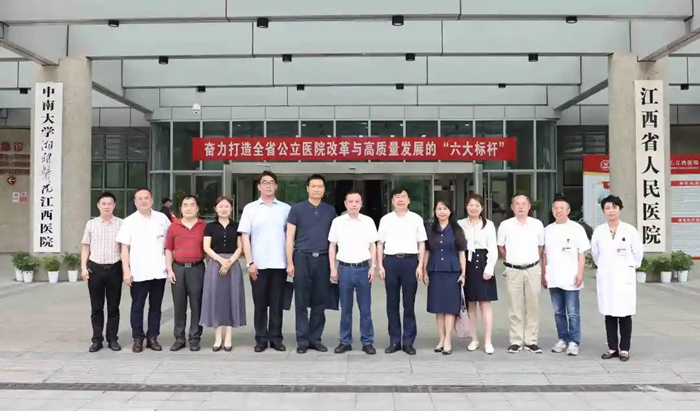 调研组一行先后实地参观了我院红谷滩院区介入诊疗中心、检验科、高压氧舱,听取相关负责人介绍优势学科项目,对我院信息推广服务平台现状有了基本了解。