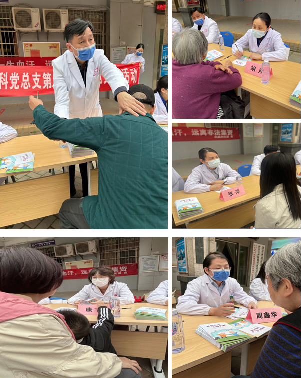 由中南大学湘雅江西医院副院长、神经内科主任徐仁伵带领的医疗团队:主任医师聂红兵、副主任医师胡凡、副主任医师张萍、主治医师康钦、主治医师周鑫华等一行12人,前往社区义诊。活动现场,候诊的居民们早早地来到了现场,有序排好队,医疗团队为前来问诊的居民看诊,耐心解答居民诊疗过程中遇到的问题。护理团队为前来问诊的居民测量血压、血糖,并提供相应护理指导,同时发放疾病健康教育手册。义诊过程中居民纷纷表示,平日里去医院看病常常要提前挂号或者预约,而且还要排很久的队,今天在家门口就能得到专家的诊治,“实在是太好了!真心希望这样的义诊活动能经常开展。”