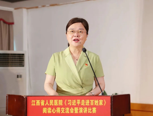在学习贯彻习近平新时代中国特色社会主义思想主题教育深入开展之际,2023年6月29日下午,江西省人民医院(南昌医学院第一附属医院)《习近平走进百姓家》阅读心得交流会暨演讲比赛在爱国路院区门诊十楼综合厅举行。省卫生健康委党组成员、院党委书记钭方芳出席活动并致辞,纪委书记欧阳慧勇、总会计师欧阳环宇出席。