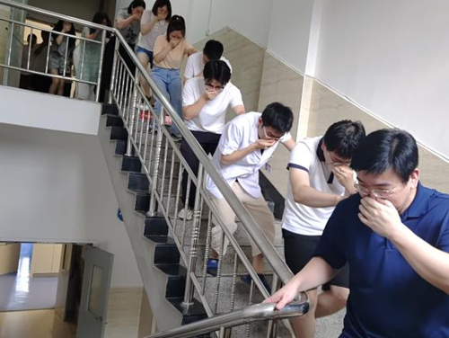 课程接近尾声,模拟现场发生重大火灾,需要所有人员进行紧急疏散,组织大家进行了应急疏散演练。学员们一手捂口鼻,一手紧贴前一人的后背,有序进行快速逃离。整个演练过程既紧张、激烈又有条不紊,达到了预期目标。