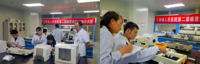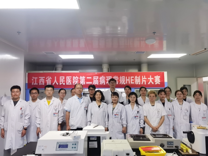 为了提升病理技术操作水平,活跃职工及学生的学习热情,2023年6月29日,江西省人民医院(南昌医学院第一附属医院)第二届病理常规HE制片大赛在红谷滩院区门诊二楼病理科技术室顺利举办。此次比赛由病理科漆楚波副主任倡导举办,袁晟主管技师具体策划和组织,参加比赛选手共15人,其中本院病理技师9人,实习生、进修生6人。